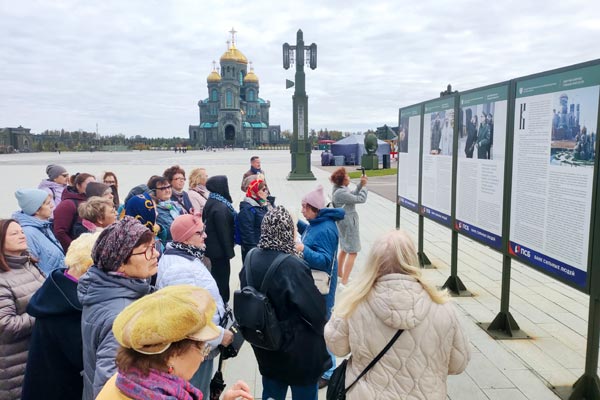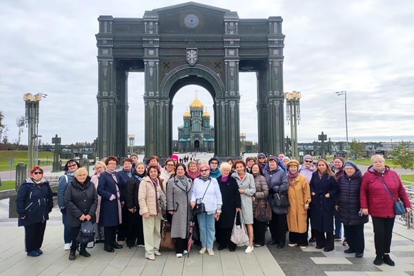 Экскурсионная программа продолжилась посещением главного православного Храма Вооруженных Сил Российской Федерации «Собор Воскресения Христова», строительство которого посвящено ратным подвигам русского народа во всех войнах и приурочено к 75-летию Победы в Великой Отечественной войне. Участники экскурсии посетили верхний храм, именуемый в честь Воскресения Христова и нижний храм, освященный в честь Святого Равноапостольного Великого князя Владимира, осмотрели своды, иконы, мозаику, архитектуру, мозаичную фигуру Христа, парящего над главным престолом и окруженного шестикрылыми серафимами, и святыню храма – Спаса Нерукотворного.