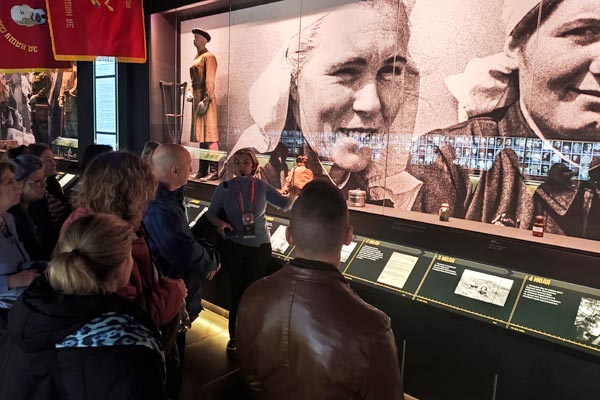 Далее в сопровождении экскурсовода экскурсионная программа продолжилась  посещением  музейного комплекса «Дорога Памяти», где экскурсанты прошли 1418 шагов - ровно столько дней длилась Великая Отечественная война, осмотрели эстакаду из залов с художественными мемориальными экспозициями и выставками, ознакомились с экспонатами Великой Отечественной войны и образцами военной техники.